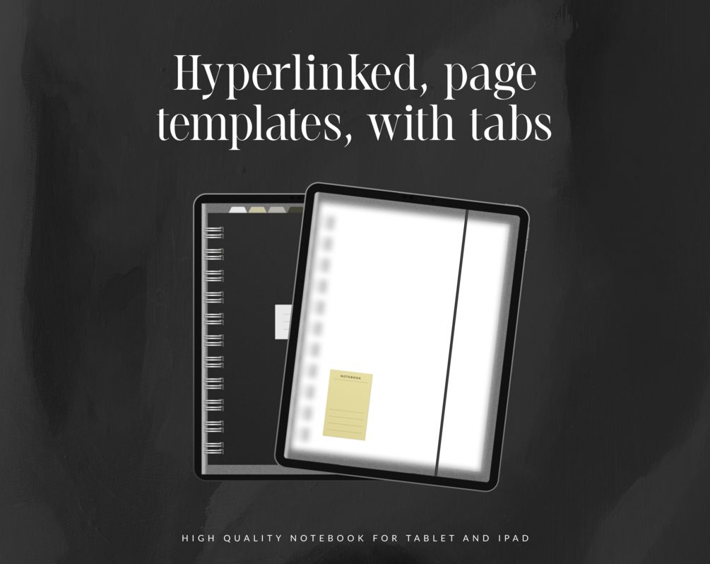 A frosted digital notebook, hyperlinked with tabs, extra front cover options, and page templates! This Ipad planner is meant to be used for apps like Notability, Goodnotes, and similar annotation apps for iPads and tablets.